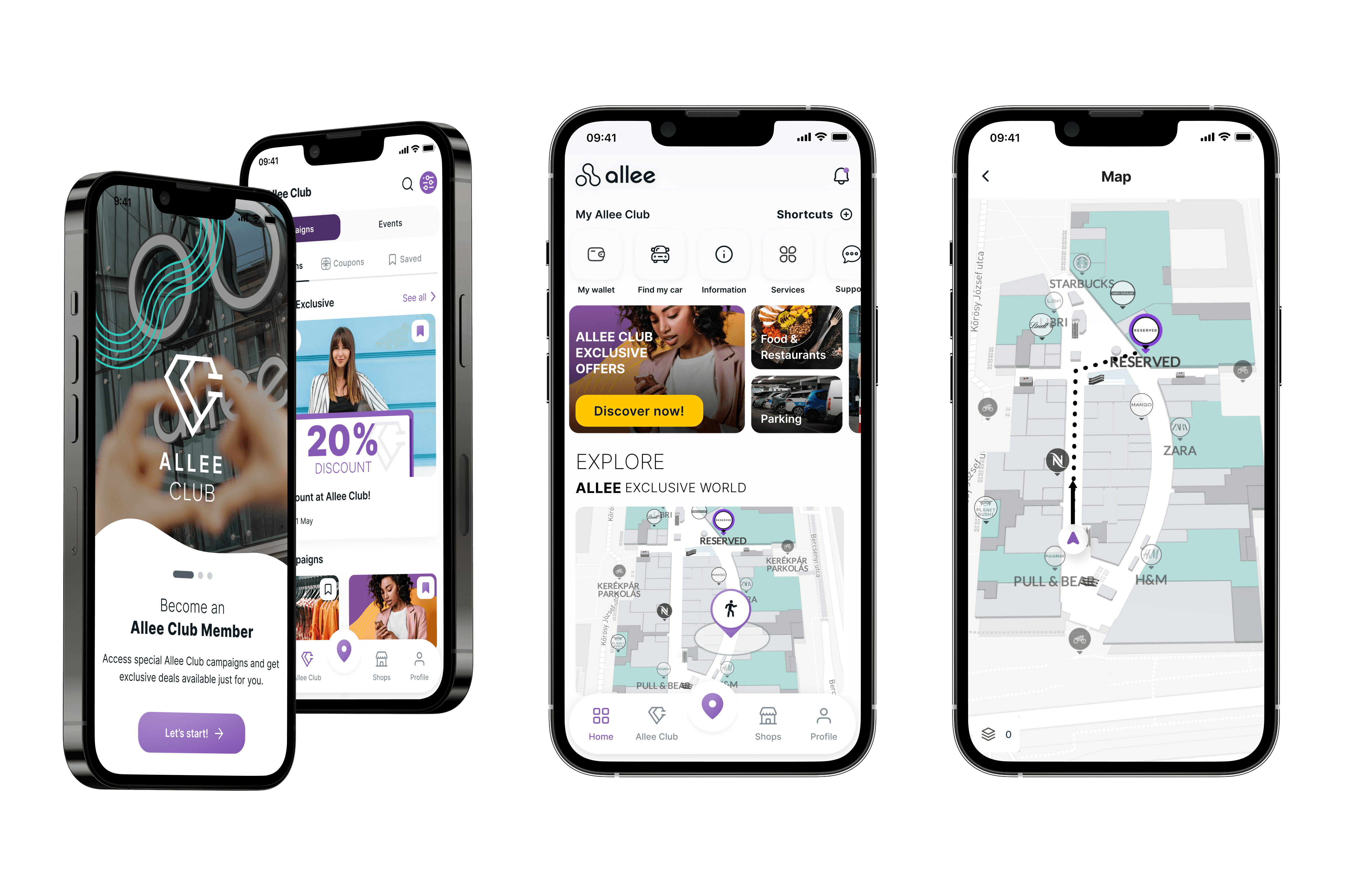 Allee Club is a mobile application designed to enhance the in-mall experience for shopping center visitors by combining navigation, content discovery, and engagement features in a single platform.